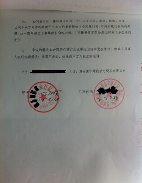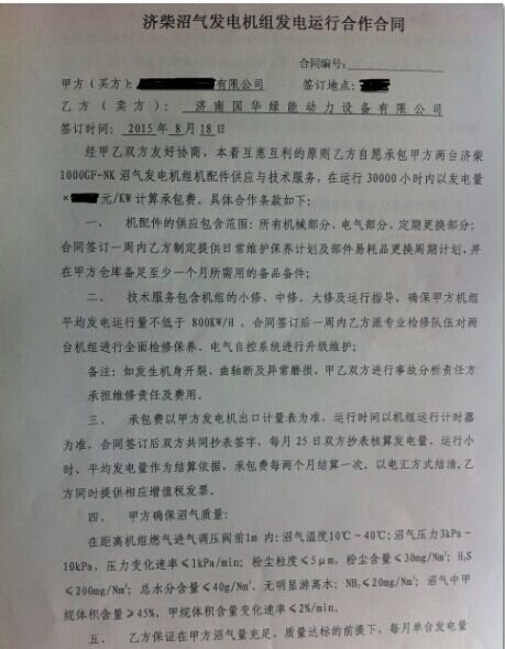 兩臺(tái)濟(jì)柴16V190沼氣發(fā)電機(jī)組技術(shù)支持及配件供應(yīng)合同簽訂